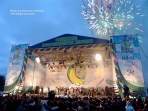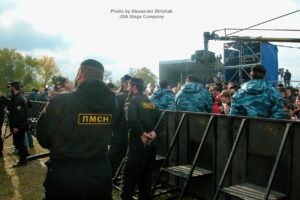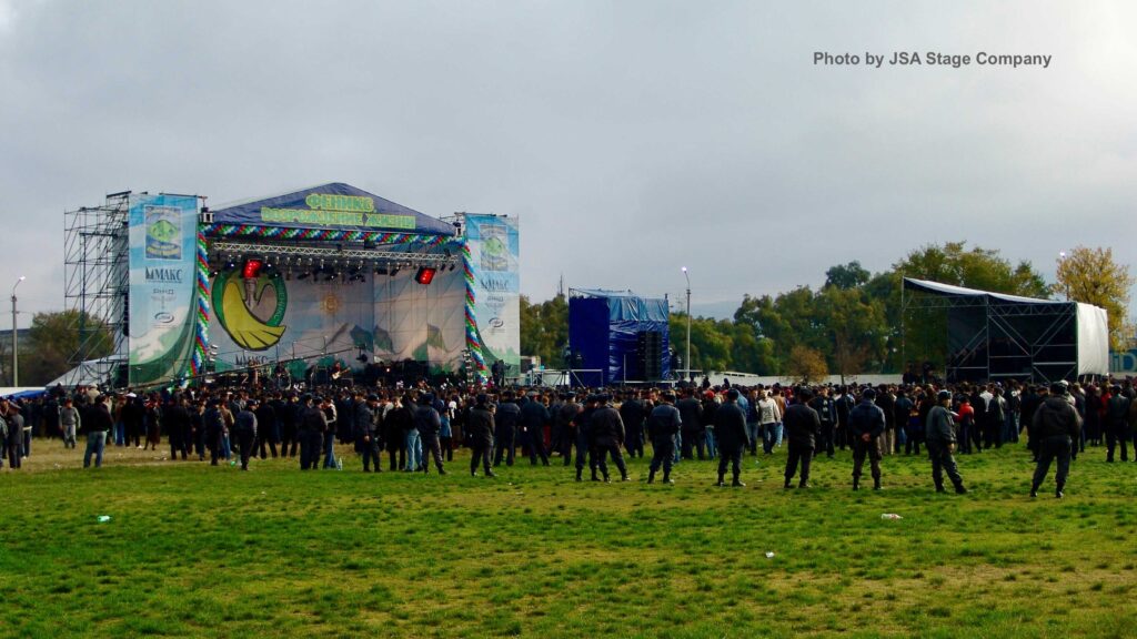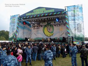 A FOH tower and television camera stands were also installed. The festival’s concert portion was broadcast by a film crew from Channel Rossiya.