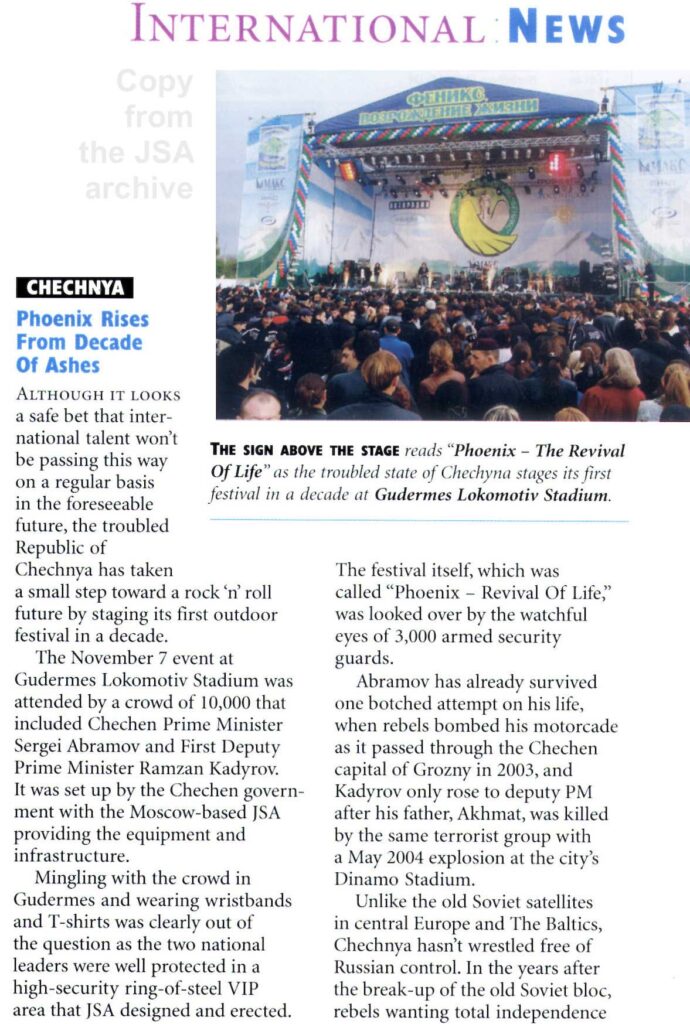 News in Russian about the Phoenix festival in Showmaster magazine, No. 4, 2005 (43) – JSA FOR A ROCK FESTIVAL IN CHECHNYA