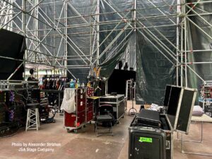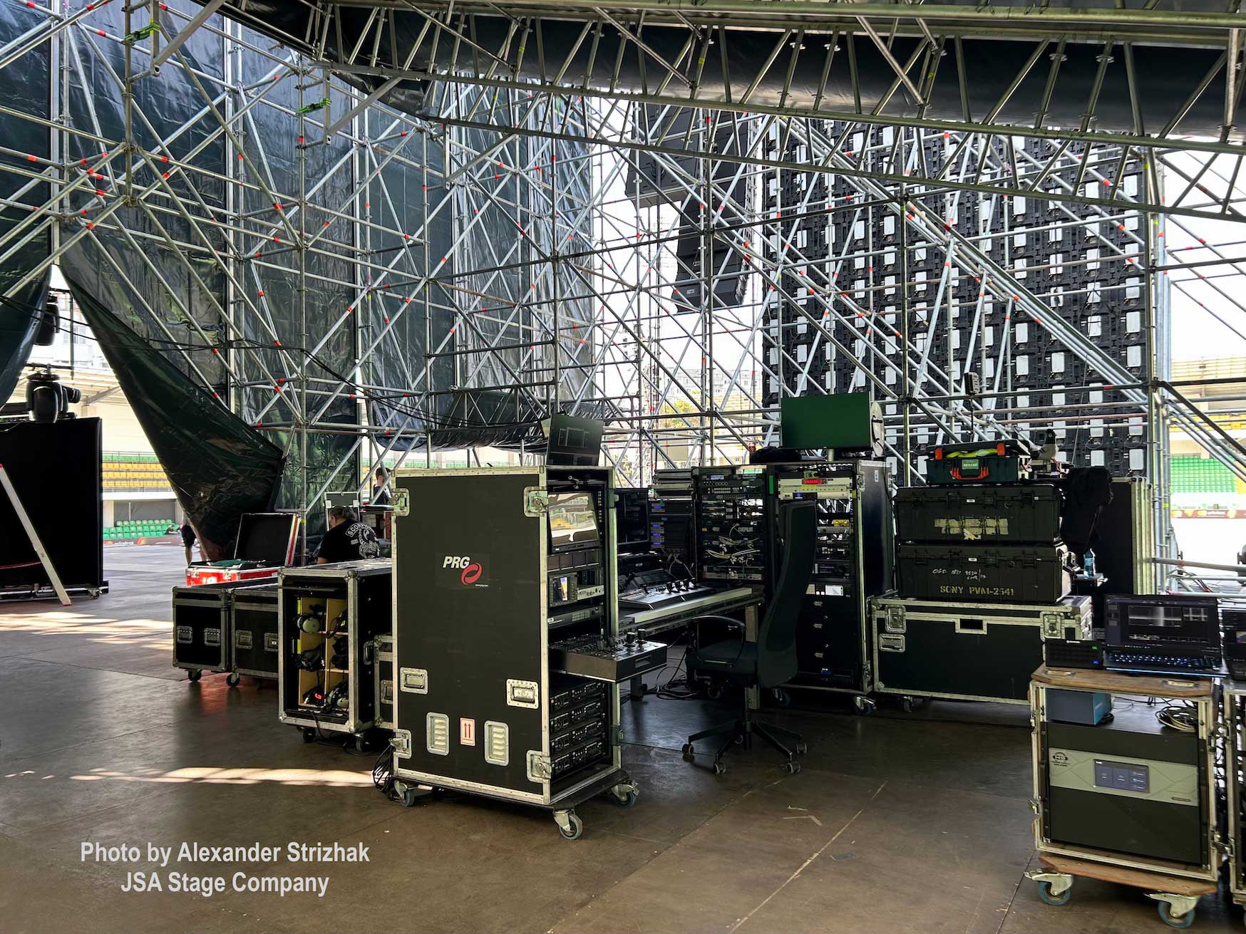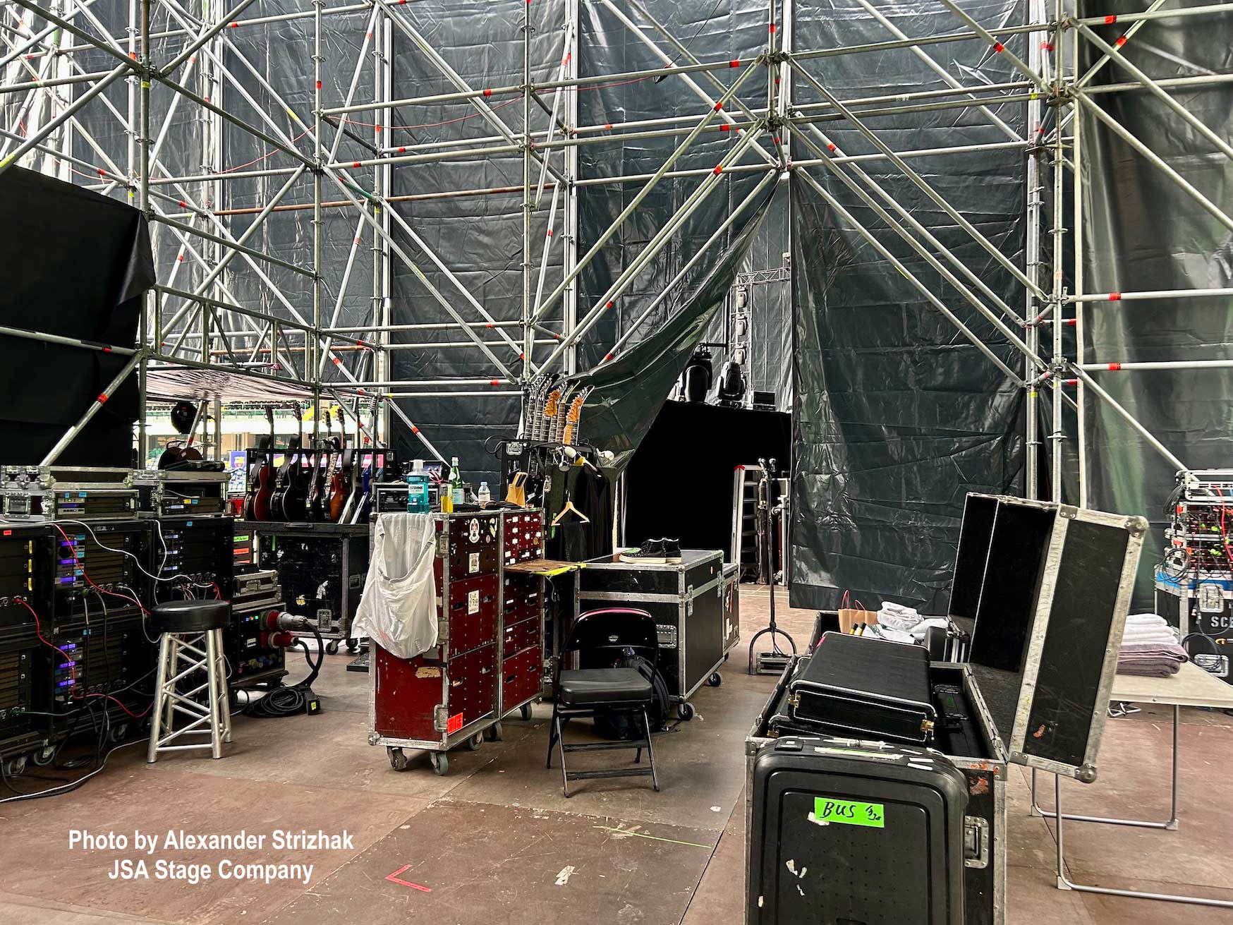 A few “secret” shots from the backstage area, the “kitchen” of the musicians, their assistants, and technicians. It’s always interesting to see what goes on there. To create this backstage space, side platforms with canopies were installed within the stage structure.