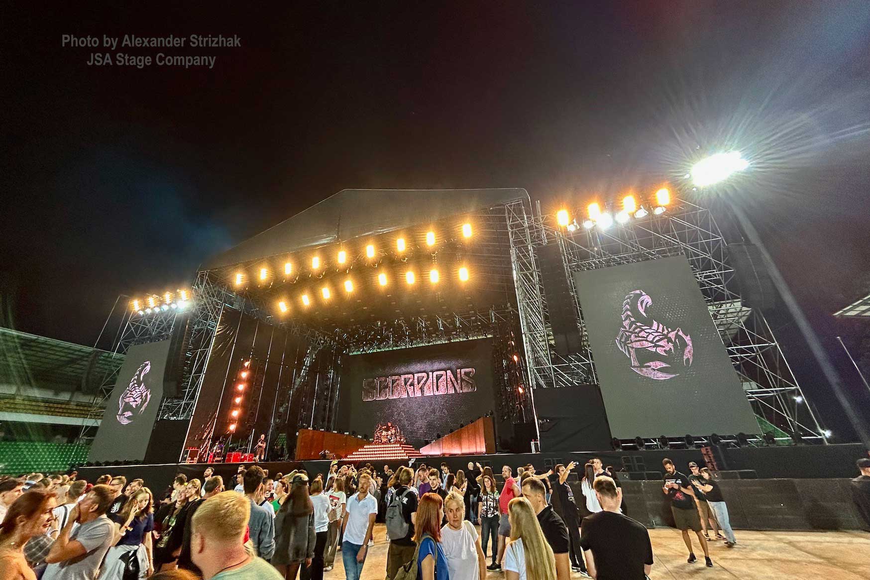 On September 9, 2025, the famous band SCORPIONS performed at Zimbru Stadium in Moldova’s capital. The popular rock musicians’ concert was part of their anniversary tour in honor of the band’s 60th anniversary. This tour is called “Coming Home to…,” and each city’s advertising for the show includes its name. Therefore, this live show was titled in English: “Coming Home to Chisinau” or „Întoarcerea acasă la Chișinău” (in Moldavian) JSA contributed to the stage construction for this event.