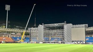 JLo (Jennifer Lopez) and her performers performed on a large stage provided by local companies. Therefore, our installers were tasked with unique and complex tasks, including installing and dismantling certain structures and rigging elements, hanging banners and tents, overseeing the installation of safety (crowd) barriers, and handling emergency tasks and any problematic extras.